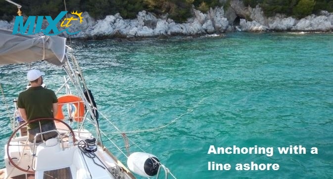Reverse mooring with anchor - Line ashore to tree or rock - Safe anchoring techniques